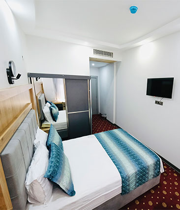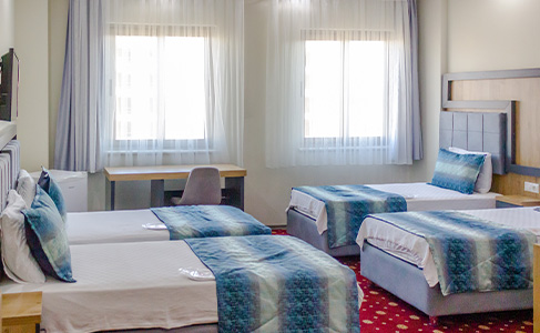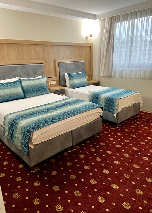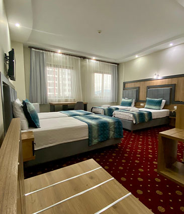 Üç kişilik suit oda, geniş ve konforlu yapısıyla aileniz veya arkadaşlarınızla rahat bir konaklama sağlar. Modern tasarımı, rahat yatakları ve şık dekorasyonu ile dinlendirici bir atmosfer sunarak, unutulmaz bir konaklama deneyimi vaat eder.