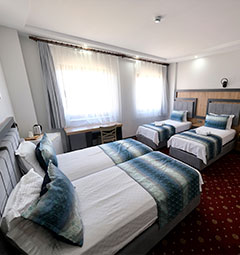 Üç Kişilik Suit Odalar, geniş ve ferah yapısıyla hem bir arada olmanın hem de kişisel alanın tadını çıkarmanızı sağlar. Otel, misafirperverliği ve profesyonel hizmet anlayışıyla her detayın düşünüldüğü bir konaklama deneyimi sunar.